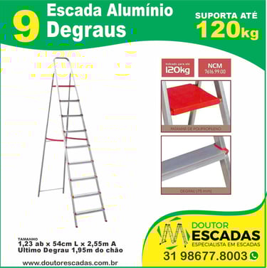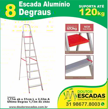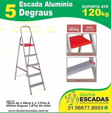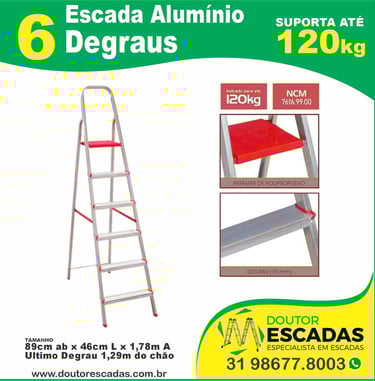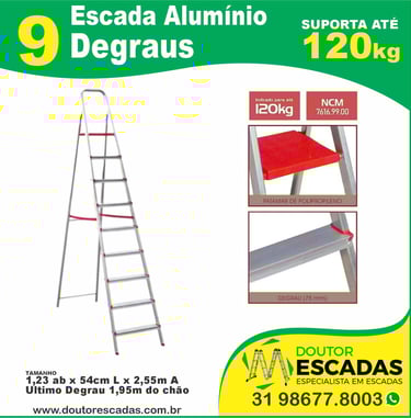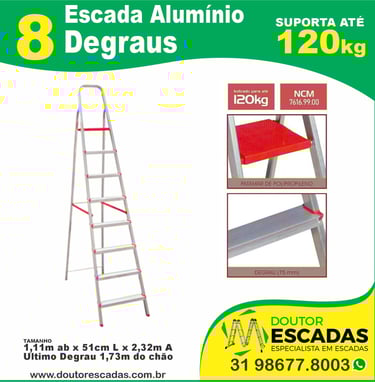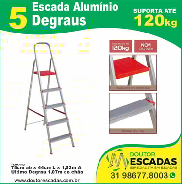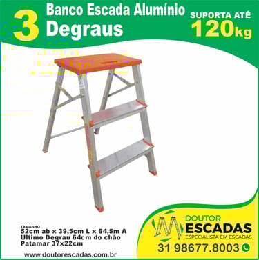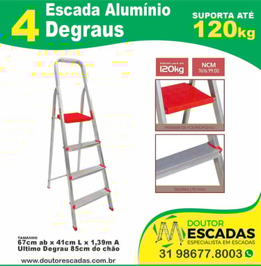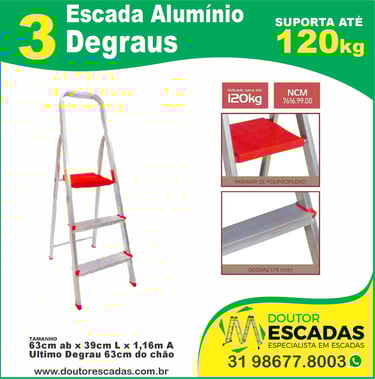 altura do último degrau em relação ao chão é de 85cm e suporta até 120kg e muito leve.